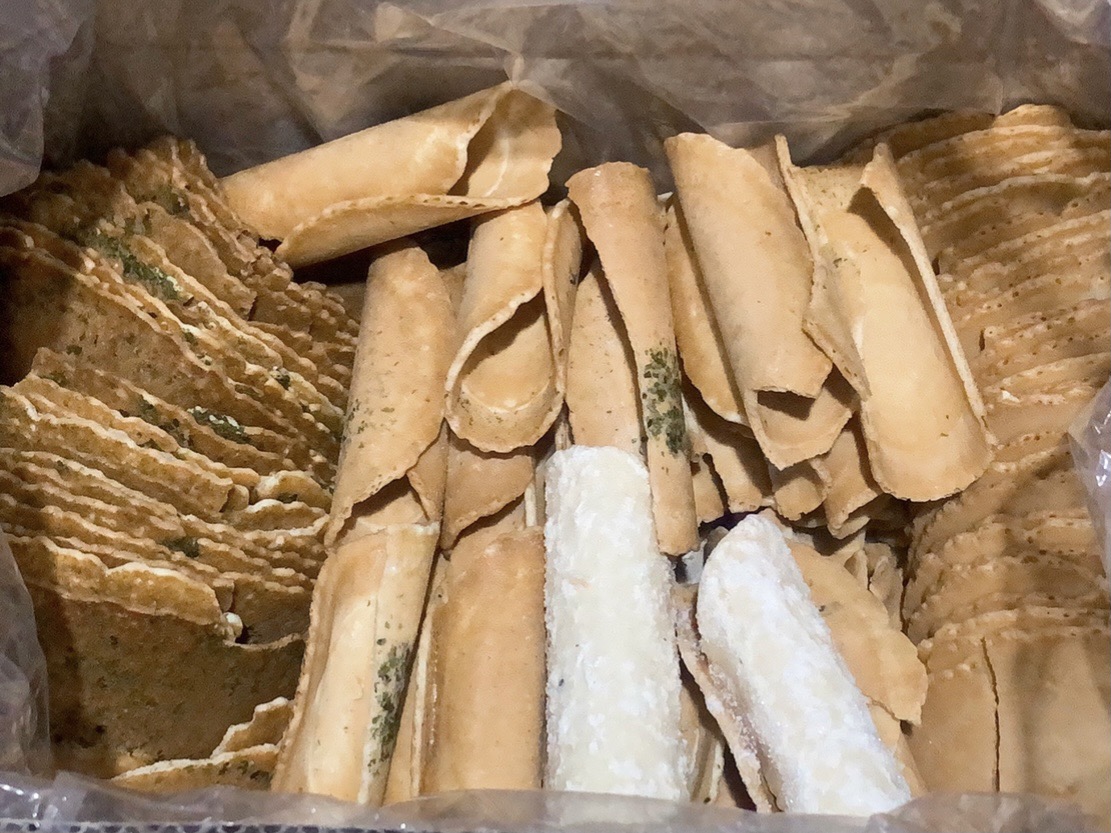 택배 과정을 거치니까 어느 정도 부서지는 것은 당연하리라는 생각을 하고 개봉을 하였는데 예상외로 별로 부서지지 않고 멀쩡하게 잘 도착하였습니다. 튼튼한 비닐에 담겨있으니 가루 날림도 전혀 없습니다! 처음에 한입 먹어 봤을 때 너무너무 바삭해서 놀랐는데 알고 보니 제가 2개가 찰싹 겹쳐져 있는 전병을 먹어서 엄청 바삭하게 느낀 거더라고요. 그 바삭함을 경험해본 후부터 저는 계속 2개를 한꺼번에 먹었다죠. 생강전병은 3개 들어있었는데 좋아하는 사람으로서 부족해서 아쉬웠습니다. 왜 이렇게 조금 들어 있는 건가요...